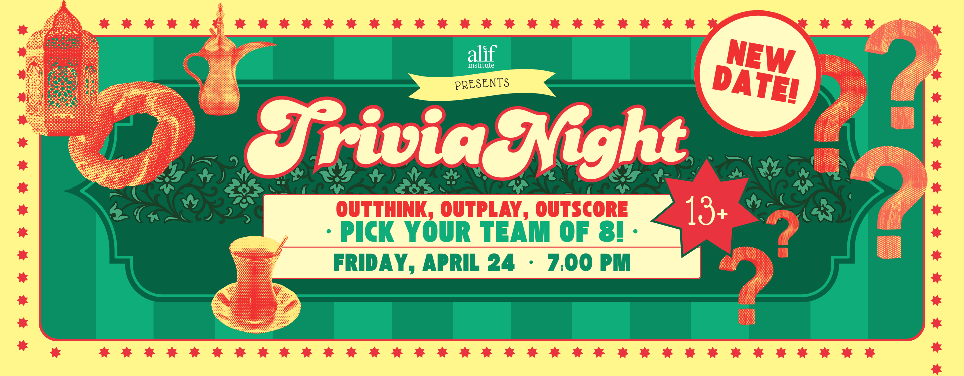 Join us for a fun-filled evening of trivia competition led by Alif Institute’s Youth Group!