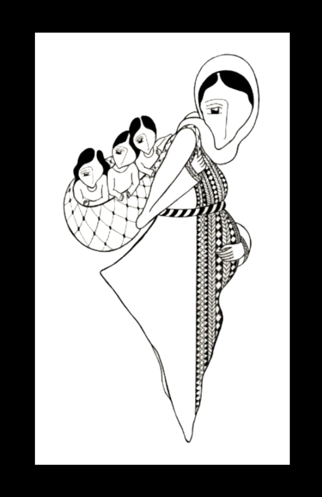 “While a graduate student in Women’s and Gender Studies at DePaul University in 2015, I started doodling in class to ease the trauma flashbacks I was experiencing while reading course materials that discussed military and gendered violence. Doodling was a way for me to avoid having to leave the classroom due to being triggered. Months later, my doodles turned into sketches, and as a result, a collection of over forty complete art pieces came to life. “The Art of Weeping” collection emerged slowly, as I was grappling with multiple traumas having lived under Israeli military occupation for twenty-one years, and later forced to migrate to the U.S in 2004.