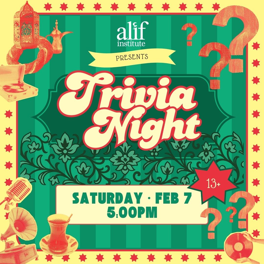 Join us for a fun-filled evening of trivia competition led by Alif Institute’s Youth Group!